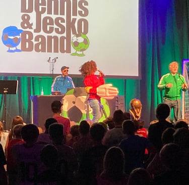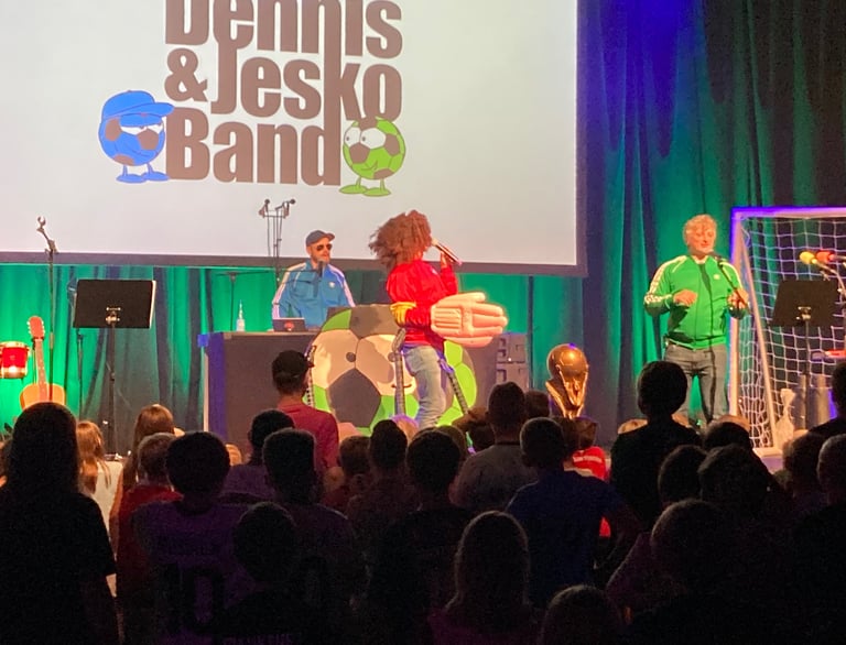 Also. Dennis & Jesko machen seit über 20 Jahren als Autoren und Regisseure Filme für "Extra 3", das ARD-Satiremagazin. Die von ihnen neu getexteten Extra-3-Songs zu bekannten Melodien bringt seit über 10 Jahren Markus als Produzent auf die richtige Tonspur. Und eines Tages haben die drei dann angefangen, Fußballsongs für WUMMS zu machen und die dann später auch noch selbst komponiert. Bei YouTube haben ihre Lieder zusammen über 500 Millionen Klicks, allen voran der Rambo-Ramos-Song mit 60 Millionen. Und irgendwann fragte jemand: "Kann man euch auch live sehen?" Und seitdem sind sie eine Band.